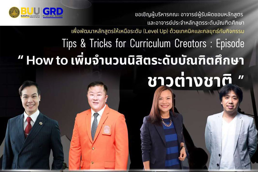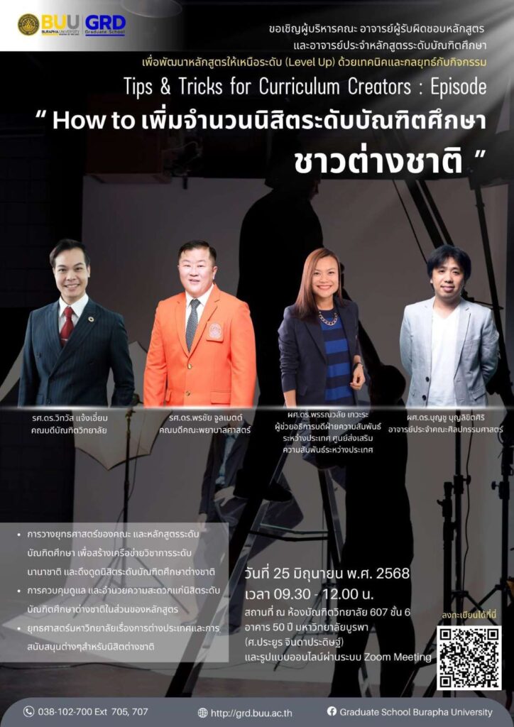 โครงการ Tips & Tricks for Curriculum Creators : Episode “How to เพิ่มจำนวนนิสิตระดับบัณฑิตศึกษาชาวต่างชาติ” ปลดล็อกศักยภาพและพัฒนาหลักสูตรให้เหนือระดับ (Level Up) ด้วยเทคนิคและกลยุทธ์จากกิจกรรม “Tips & Tricks for Curriculum Creators” สำหรับผู้บริหารคณะ อาจารย์ผู้รับผิดชอบหลักสูตร และอาจารย์ประจำหลักสูตรระดับบัณฑิตศึกษา!