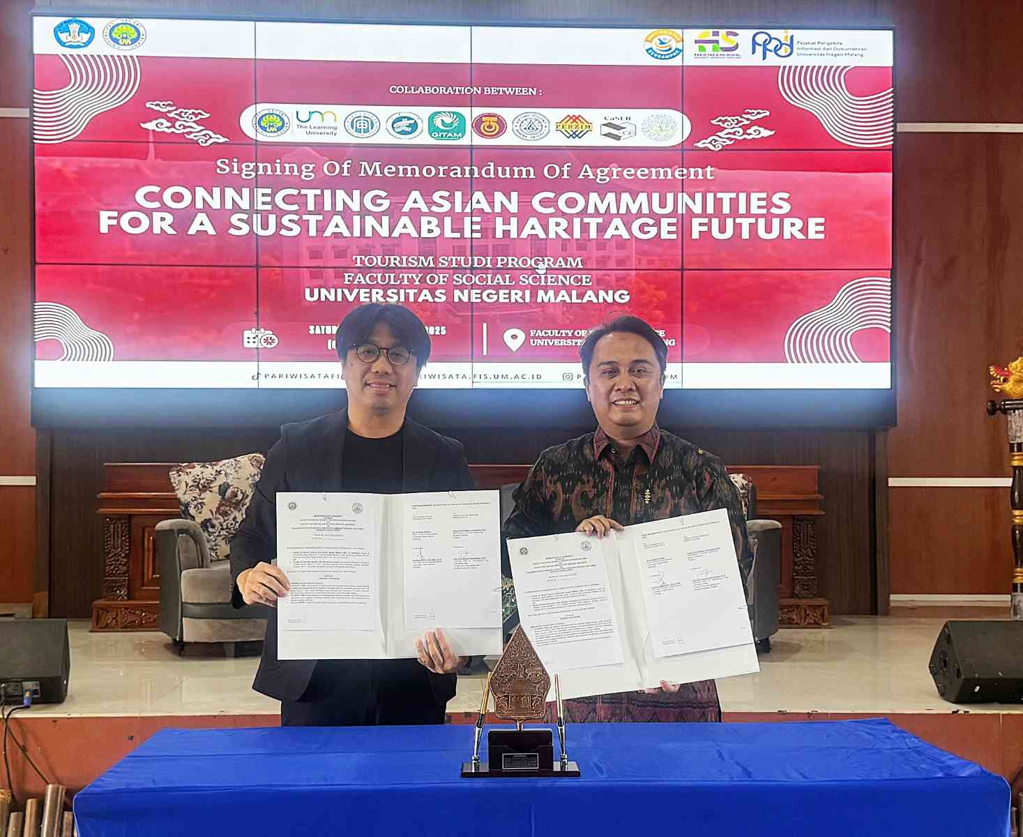 เมื่อวันที่ 5 ตุลาคม พ.ศ. 2568 ที่ผ่านมา ผศ. ดร.บุญชู บุญลิขิตศิริ รองคณบดีฝ่ายบริหารและวิเทศสัมพันธ์ คณะศิลปกรรมศาสตร์ มหาวิทยาลัยบูรพา เป็นตัวแทนคณบดีลงนามความร่วมมือทางวิชาการกับ Faculty of Social Science, Universitas Negeri Malang (UM) ประเทศอินโดนีเซีย พร้อมเข้าร่วมประชุมวิชาการ ณ มหาวิทยาลัยดังกล่าว
