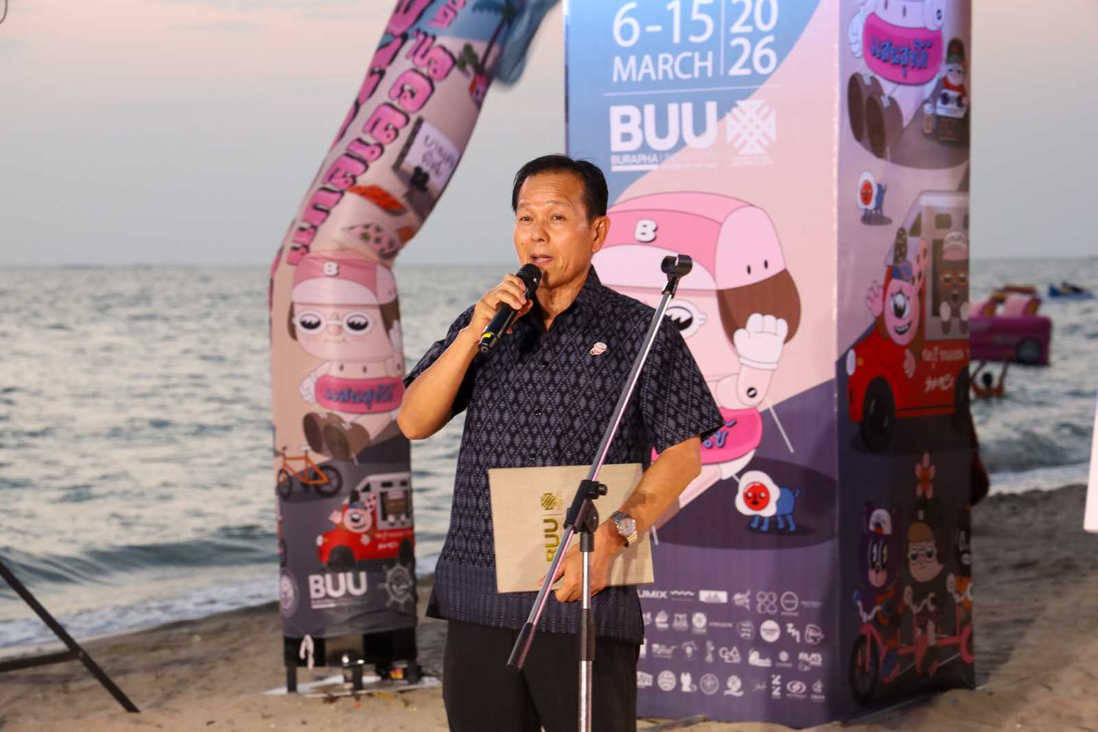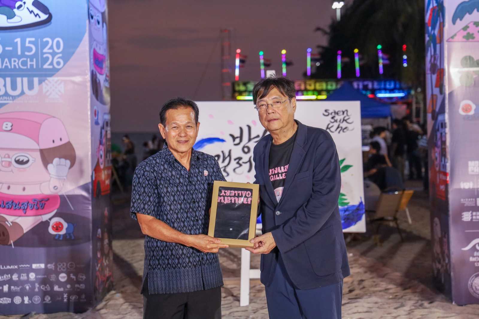 ภายในพิธีเปิดยังมี คุณวรพจน์ เอี่ยมรักษา รองอธิการบดีมหาวิทยาลัยบูรพา กล่าวขอบคุณผู้สนับสนุนและมอบของที่ระลึกแก่ผู้มีเกียรติ ก่อนร่วมถ่ายภาพหมู่ และเชิญผู้เข้าร่วมงานเดินชมกิจกรรมศิลปะ เวิร์คช็อปสร้างสรรค์ และนิทรรศการต่าง ๆ ภายในงานริมทะเลบางแสน