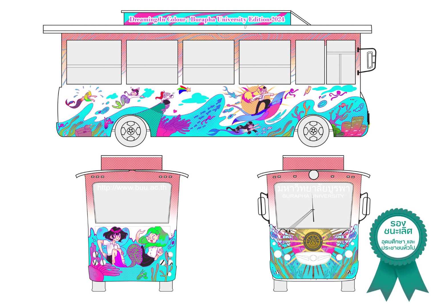 ประกาศรายชื่อและพิธีมอบรางวัล ประเภทไฟล์ดิจิตัล แก่ผู้ที่ได้รับรางวัลการประกวดแข่งขันวาดภาพจิตรกรรมสร้างสรรค์ จินตนาการสู่รถสวัสดิการมหาวิทยาลัย หัวข้อ “สีสันแห่งบูรพาทัศน์” ครั้งที่ 2 Dreaming in Colors: Burapha University Edition 2024