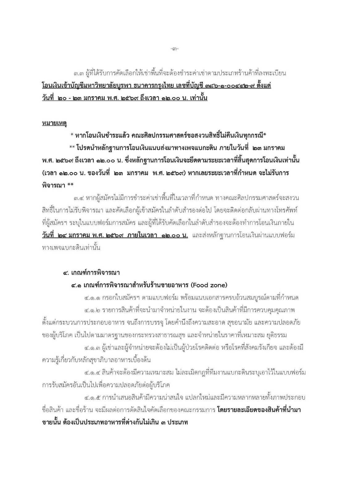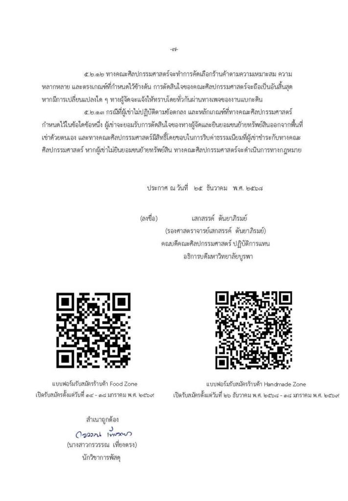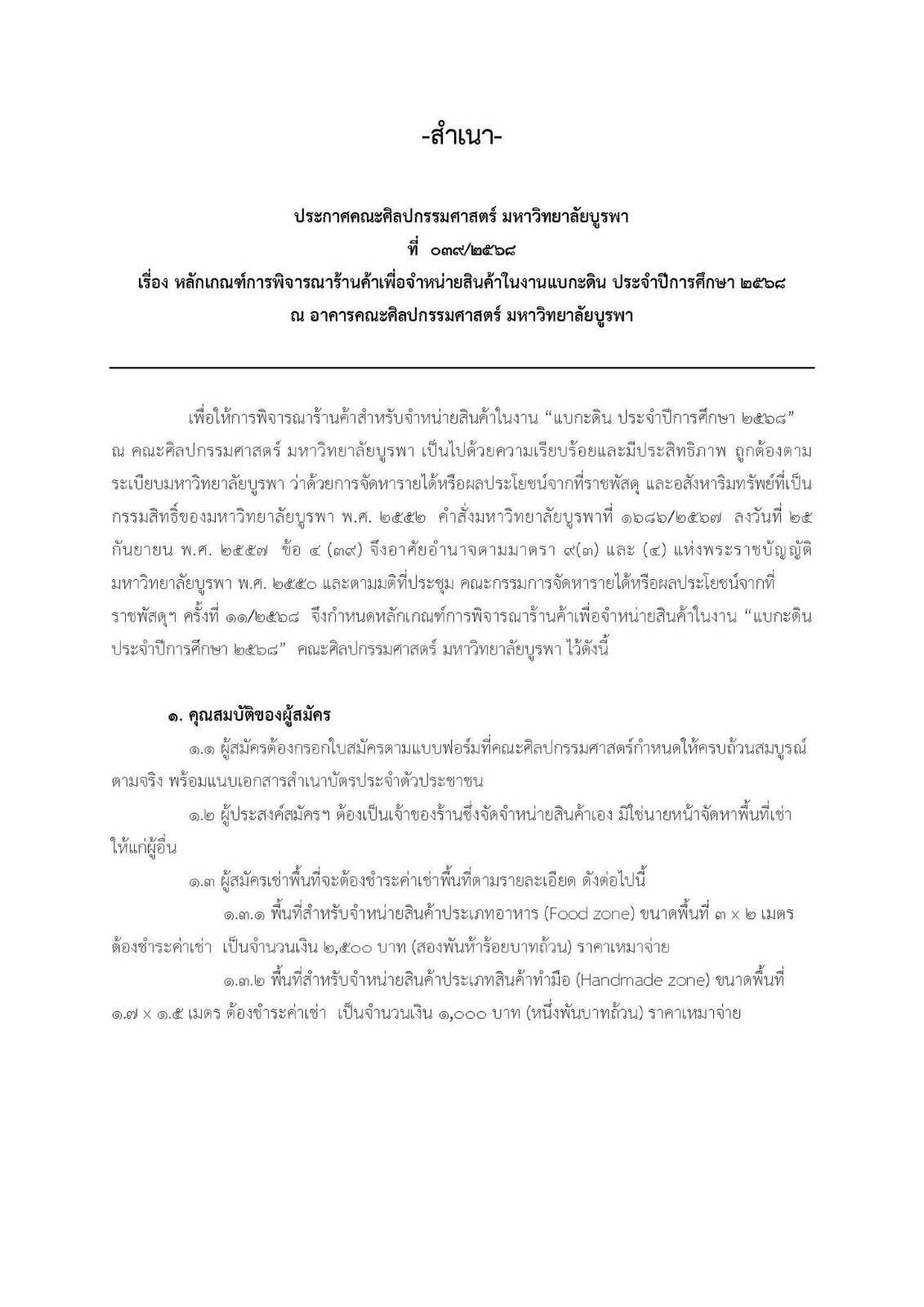 ประกาศคณะศิลปกรรมศาสตร์ มหาวิทยาลัยบูรพา เรื่อง หลักเกณฑ์การพิจารณาร้านค้าเพื่อจำหน่ายสินค้าในงานแบกะดิน ประจำปีการศึกษา 2568