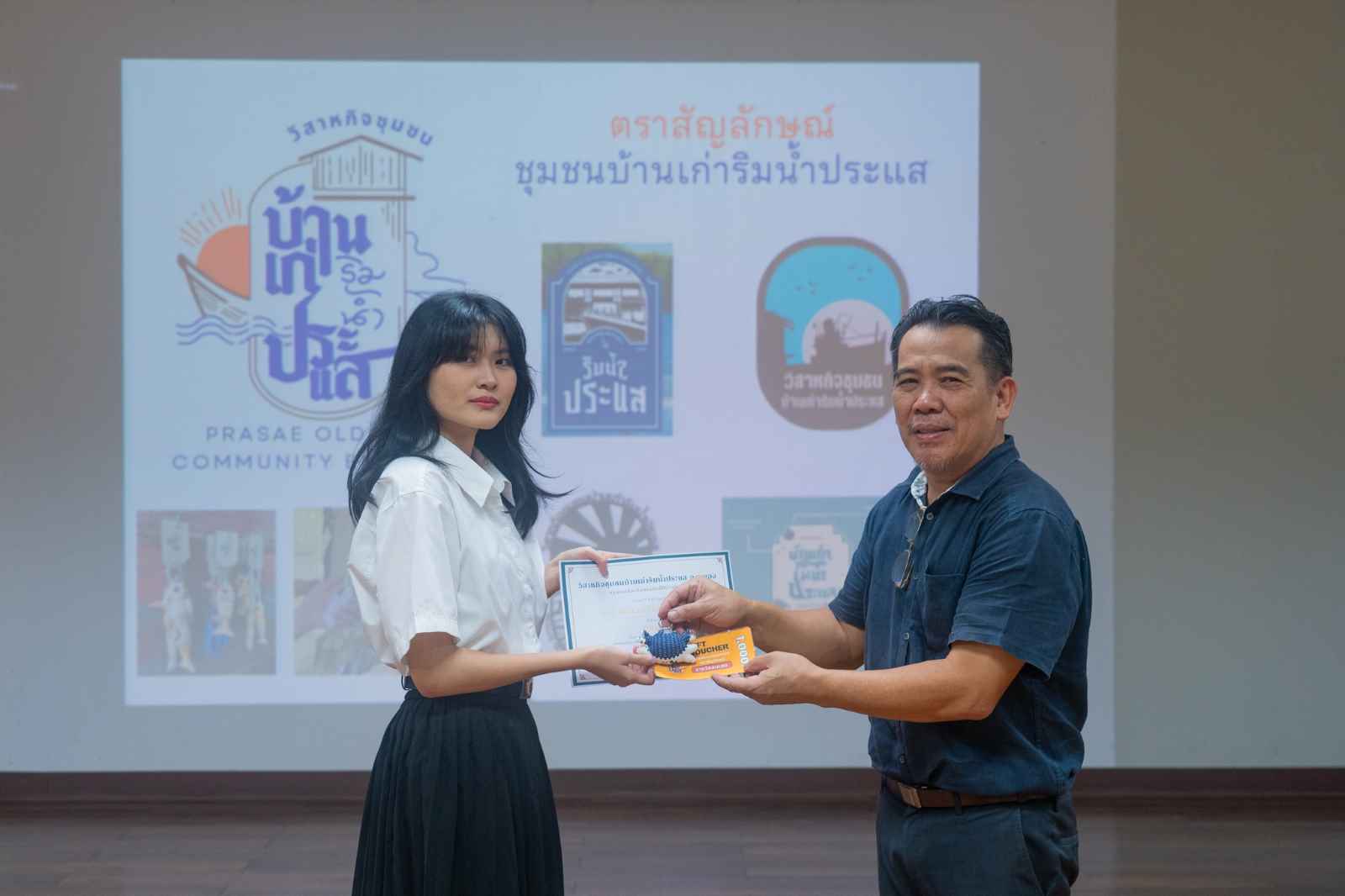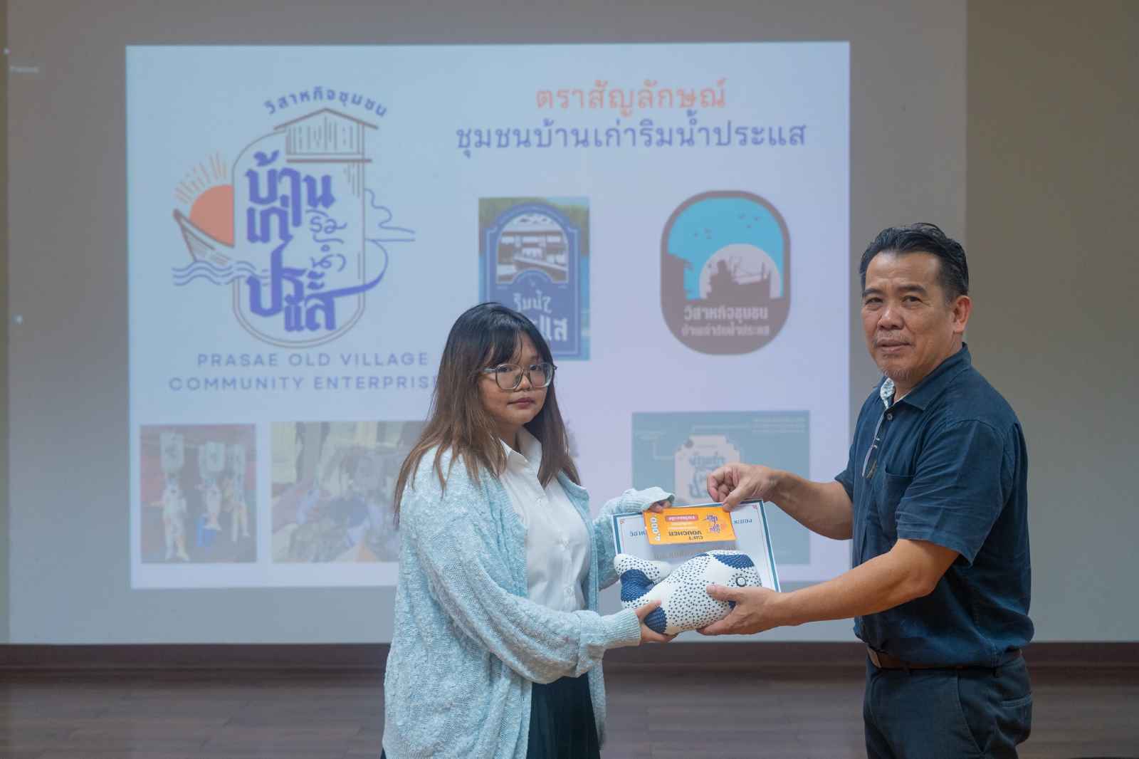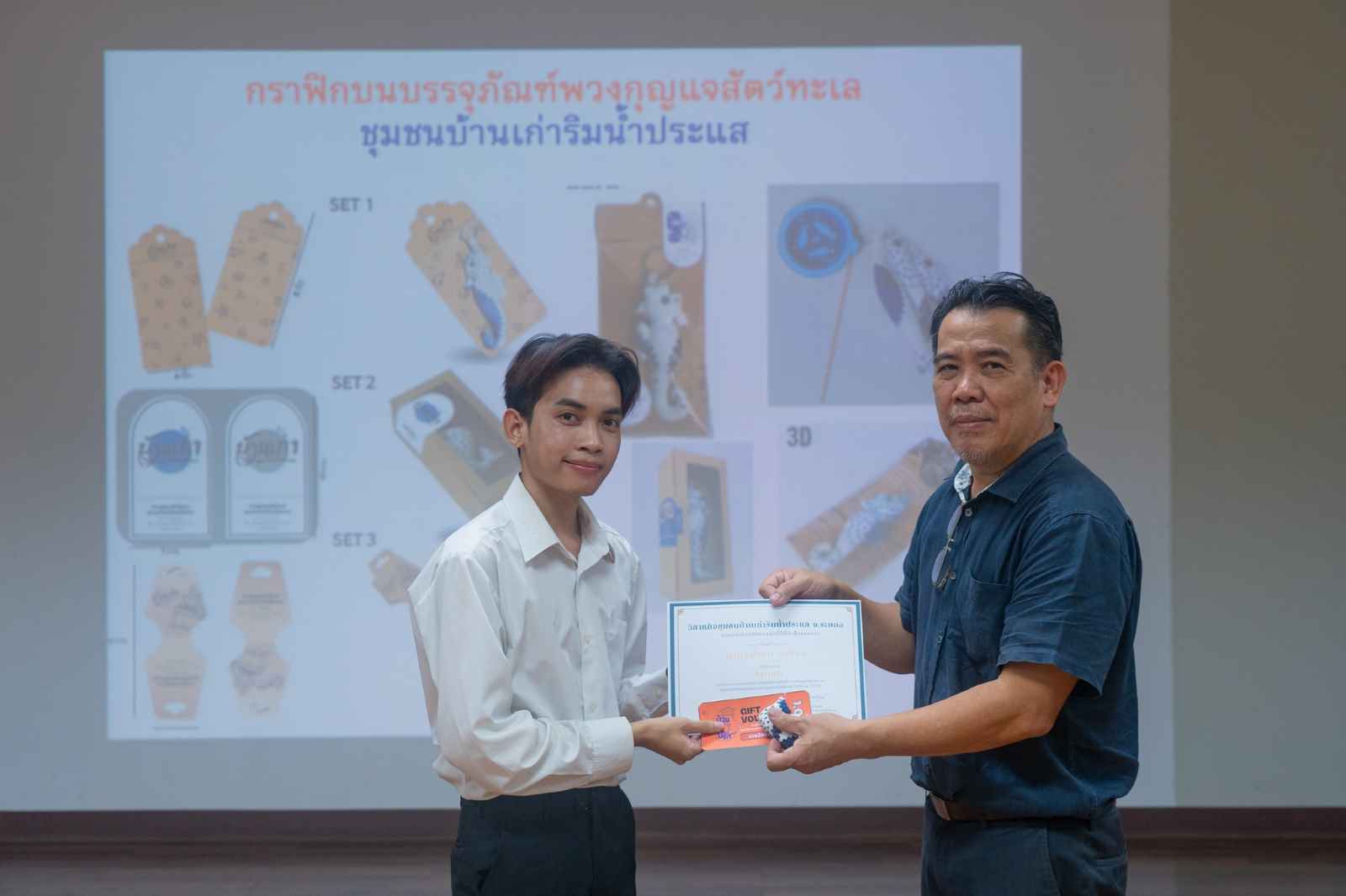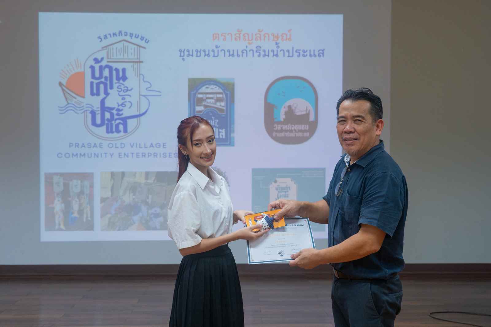 ทั้งนี้ขอขอบคุณมายัง คุณสุภาพร ยอดบริบูรณ์ ประธานวิสาหกิจชุมชนบ้านเก่าริมน้ำประแส ผู้ส่งมอบเงินรางวัลมูลค่ากว่า 20,000 บาท พร้อมของที่ระลึกให้กับนิสิตผู้ชนะการประกวด ทั้งสิ้น 11 รางวัล เป็นขวัญและกำลังใจให้กับการทำงานบริการวิชาการเพื่อชุมชน และสามารถนำไปใช้ได้จริงในเชิงพาณิชย์ต่อไป