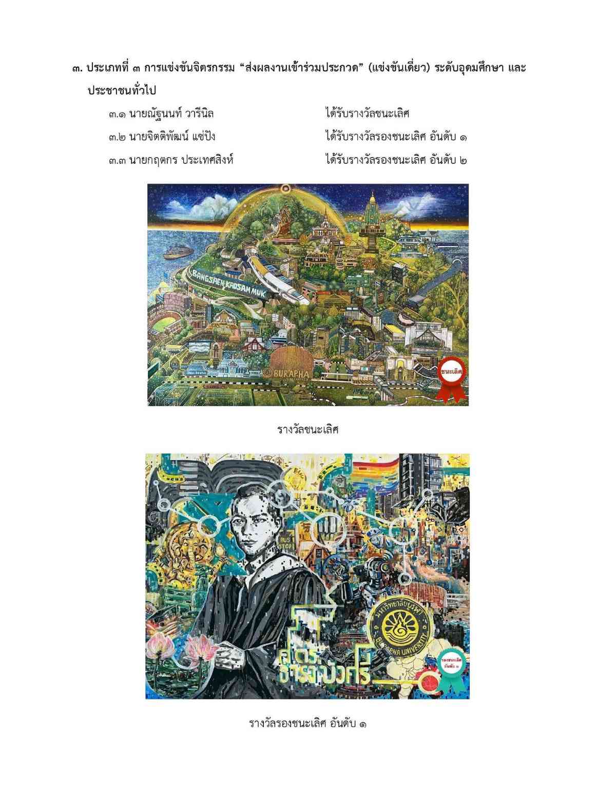 ประเภทที่ 3 การแข่งขันจิตรกรรม “ส่งผลงานเข้าร่วมประกวด” (แข่งขันเดี่ยว) ระดับอุดมศึกษา และประชาชนทั่วไป
