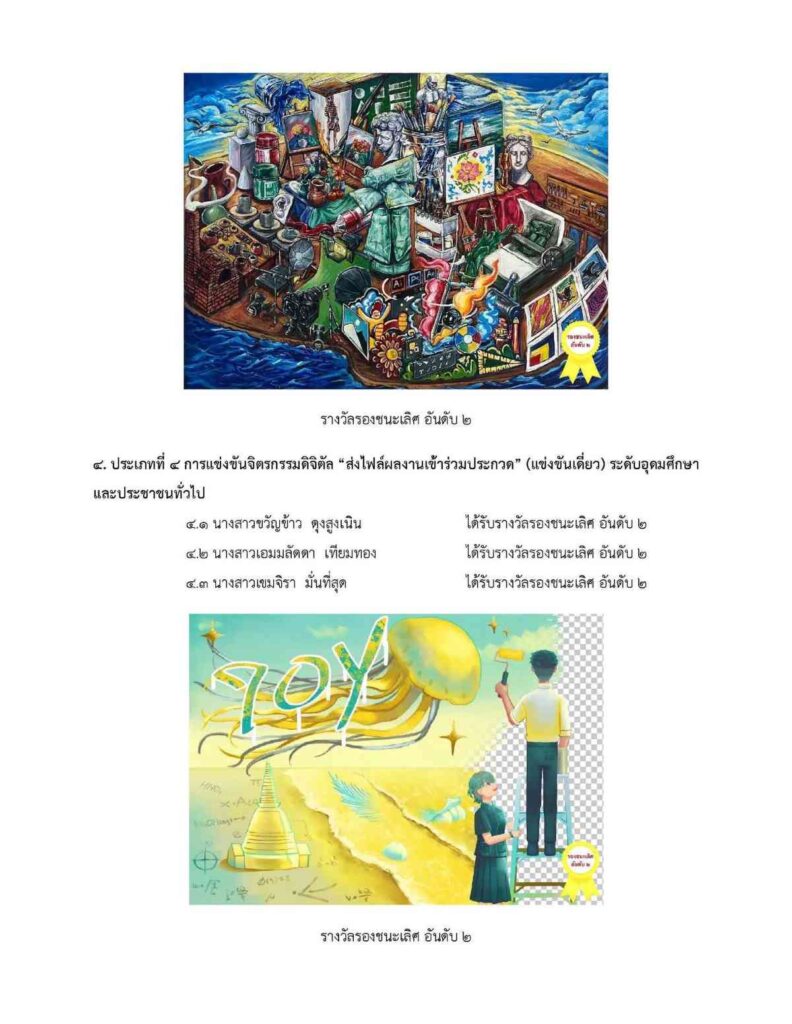 ประเภทที่ 4 การแข่งขันจิตรกรรมดิจิตัล “ส่งไฟล์ผลงานเข้าร่วมประกวด” (แข่งขันเดี่ยว) ระดับอุดมศึกษา และประชาชนทั่วไป