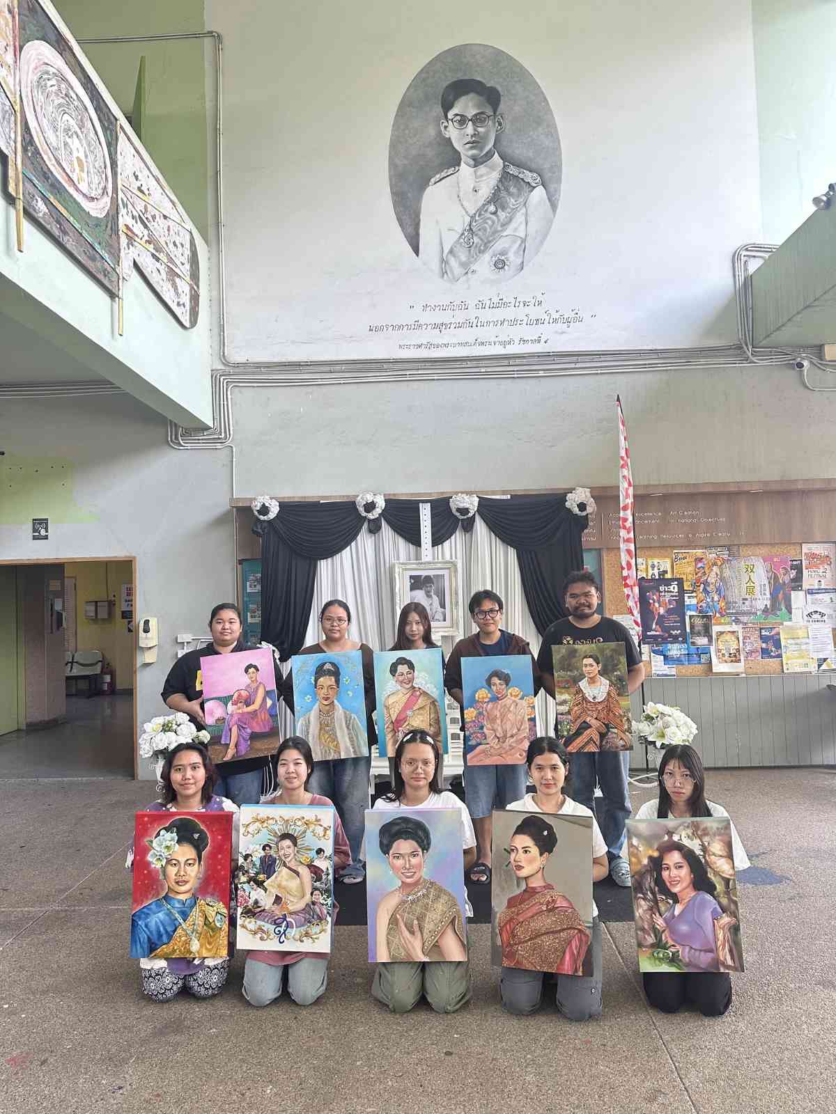 โดยมีนิสิตสาขาวิชาจิตรกรรมสร้างสรรค์ ชั้นปีที่ 3 และ 4 คณะศิลปกรรมศาสตร์ มหาวิลัยบูรพา ร่วมสร้างสรรค์ผลงานจิตรกรรม “พระพันปีหลวงในความทรงจำ” จำนวน 10 ภาพ ซึ่งมีรายชื่อนิสิตผู้เข้าร่วมสร้างสรรค์ผลงาน ดังนี้