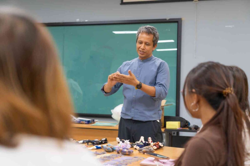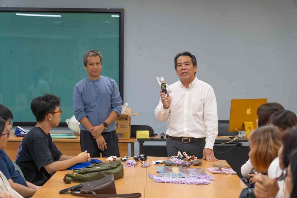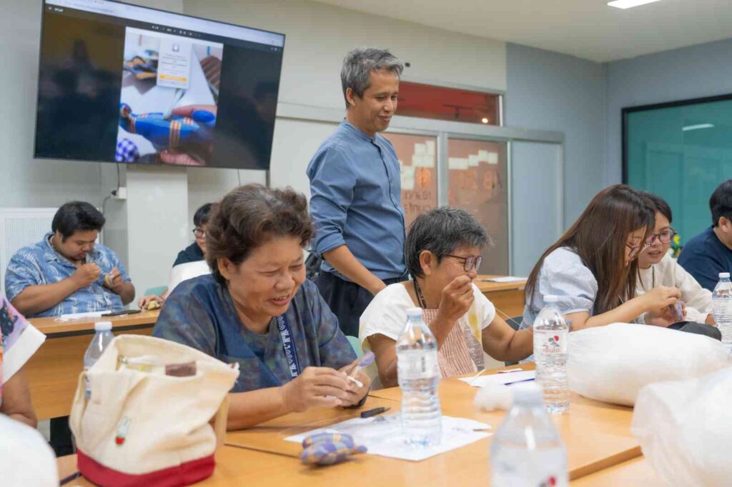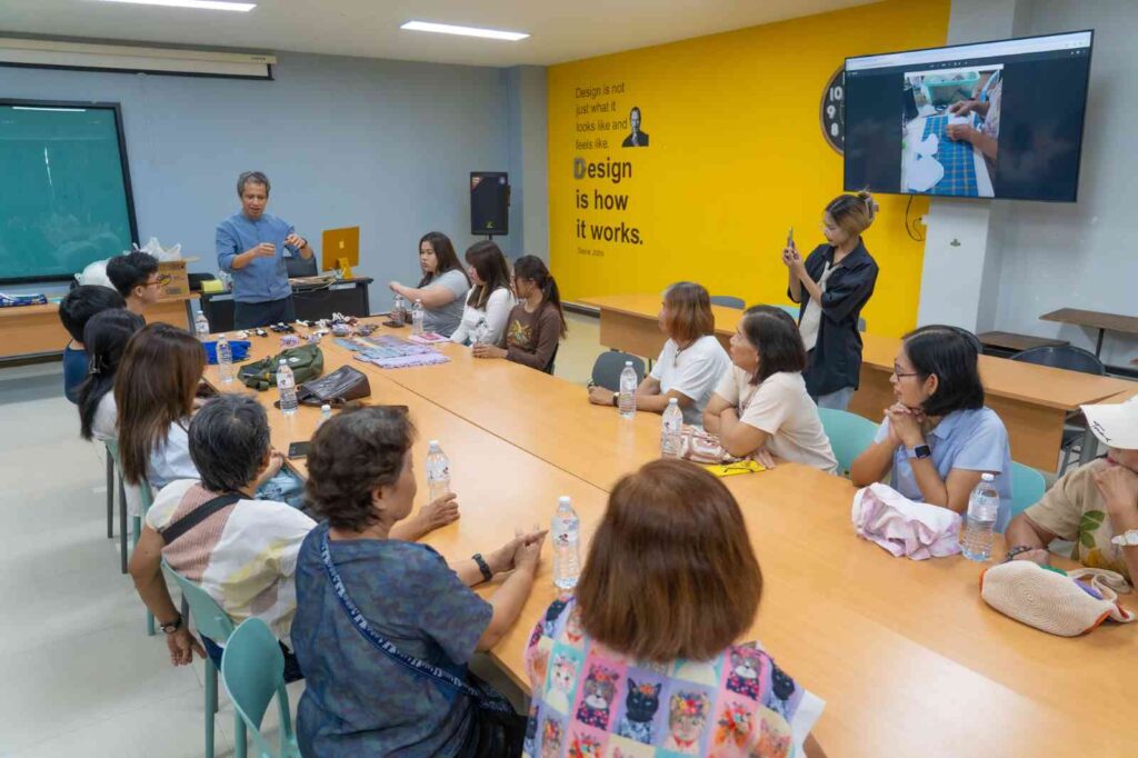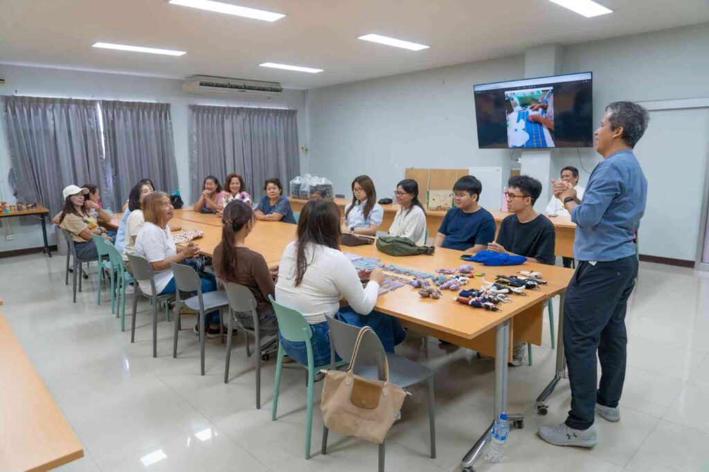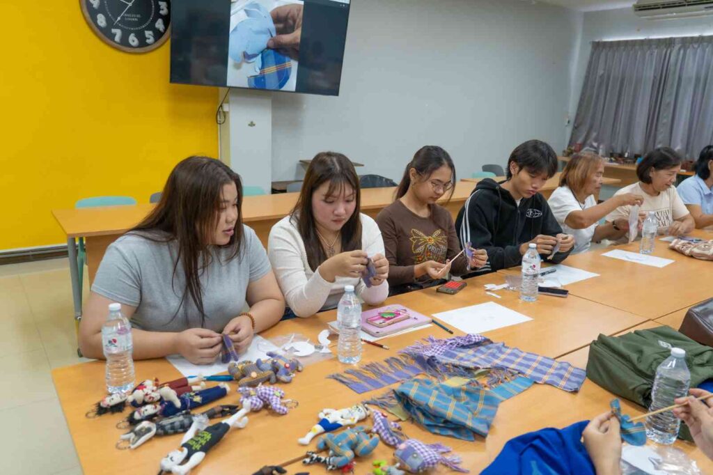 กิจกรรมในครั้งนี้มุ่ง อนุรักษ์และต่อยอดภูมิปัญญาผ้าทอบ้านหม้อ ผ้าทอพื้นถิ่นที่งดงามและทรงคุณค่าทางวัฒนธรรม พร้อมเปิดพื้นที่ให้ ชาวบ้าน นิสิต และนักออกแบบรุ่นใหม่ได้ร่วมกันสร้างสรรค์แนวคิดใหม่ๆ ในการพัฒนา “ผ้าทอมือ” ให้กลายเป็น สินค้าที่ระลึกเชิงนวัตกรรม (Creative Souvenir) ที่ต่อยอดเชิงพาณิชย์ได้จริง โดยได้รับเกียรติจาก คุณนิรันดร์ ขุนอินทร์ทอง วิทยากรผู้เชี่ยวชาญด้านการออกแบบผลิตภัณฑ์ ร่วมถ่ายทอดประสบการณ์และเทคนิคสร้างสรรค์ ผู้เข้าร่วมได้ทดลองประดิษฐ์ “พวงกุญแจผ้าทอมือ” ผลงานที่สะท้อนทั้ง ความภูมิใจในผ้าทอไทย และ พลังแห่งความคิดสร้างสรรค์ร่วมสมัย บรรยากาศอบอุ่นและเต็มไปด้วยรอยยิ้ม คือการเรียนรู้ข้ามรุ่น ข้ามวัฒนธรรม ที่ผสมผสาน “ศิลปะ – ชุมชน – วัฒนธรรม” ได้อย่างงดงาม