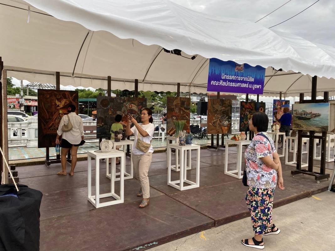 คณะศิลปกรรมศาสตร์ มหาวิทยาลัยบูรพา ได้รับเชิญจาก องค์การบริหารส่วนจังหวัดชลบุรี เพื่อมาเข้าร่วมทำการจัดนิทรรศการศิลปะ ในโครงการ “ดนตรี กวี ศิลป์ 2567“ เป็นการเผยแพร่ผลงานสร้างสรรค์ของนิสิต ทั้งศิษย์เก่า และศิษย์ปัจจุบัน ให้เป็นที่ประจักษ์ต่อสายตาสาธารณชน เมื่อวันเสาร์ที่ 13 กรกฎาคม 2567 ณ แหลมแท่น ลานมหกรรมงาน ดนตรีกวี ศิลป์ 2567