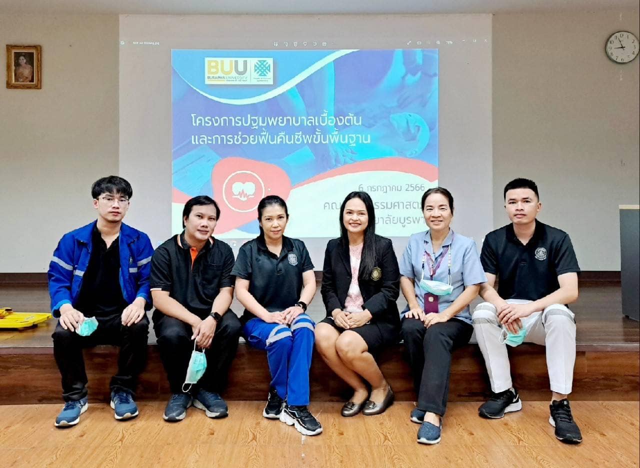 เมื่อวันที่ 6 กรกฎาคม พ.ศ.2566 คณะศิลปกรรมศาสตร์ ได้จัดกิจกรรมโครงการปฐมพยาบาลเบื้องต้น และการช่วยฟื้นคืนชีพขั้นพื้นฐาน โดยได้รับเกียรติจากพี่ๆ บุคลากรจากโรงพยาบาลมหาวิทยาลัยบูรพา โดยนางนงค์นุช แน่นอุดร นักวิชาการสาธารณสุข ชำนาญการ แผนกเวชศาสตร์ชุมชน ฝ่ายการพยาบาล โรงพยาบาลมหาวิทยาลัยบูรพา ได้บรรยายให้ความรู้เกี่ยกวับการใช้สิทธิการรักษาพยาบาลของนิสิตและบุคลากรและการส่งเสริมสุขภาพและการป้องกันโรคเบื้องต้น จากนั้นการปฐมพยาบาลเบื้องต้น โดยนางสาวปัณฑารีย์ เกียรติสถิตกุล และการช่วยฟื้นคืนชีพขั้นพื้นฐาน โดยนายศิริชัย เวียงย่างกุ้ง
