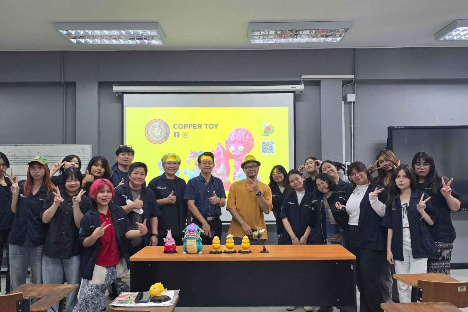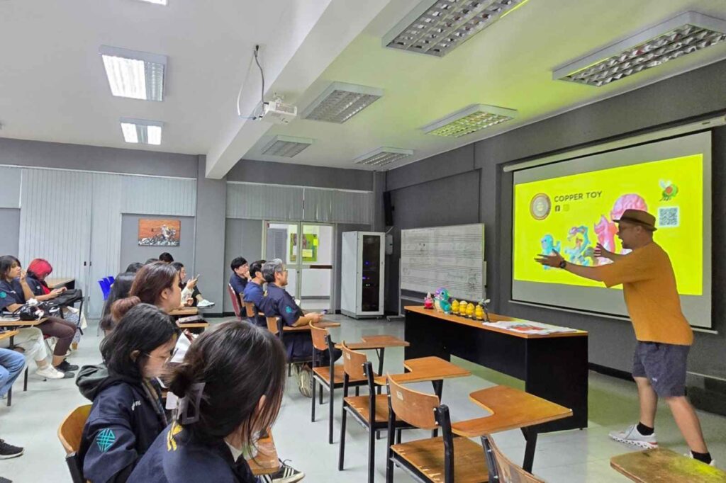 พร้อมทั้งได้รับความร่วมมือทางวิชาการระดับหลักสูตร คณะวิจิตรศิลป์ มหาวิทยาลัยเชียงใหม่ ในการเอื้อเฟื้อสถานที่เพื่อรับฟังการบรรยายจากวิทยากรนักออกแบบ และผู้เชี่ยวชาญทางด้านการออกแบบของสะสมแนวอาร์ตทอย โดย คุณธาวิน ณ เชียงใหม่ จาก Copper Toys และการสร้างหนังเทียมจากวัชพืช และเปลือกไม้ธรรมชาติ โดย คุณพลัฏฐ์ บุญพลอยเลิศ จาก Keapaz ทั้งนี้คณาจารย์ และนิสิตได้รับความรู้และประสบการณ์จากการศึกษาดูงาน ทำให้นิสิตสามารถนำความรู้ประสบการณ์ไปใช้พัฒนาผลงานกราฟิกประยุกต์และงานออกแบบของตนเองต่อไปได้ในอนาคต
