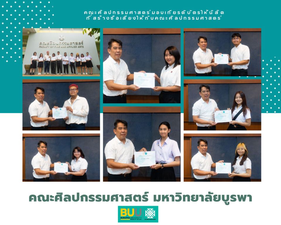 ข่าวสารและกิจกรรม พิธีเปิดโครงการนิทรรศการศิลปนิพนธ์ ประจำปีการศึกษา 2568 “รับจบ” Posted on26 มีนาคม 202630 มีนาคม 2026 พิธีเปิดนิทรรศการ “คละเส้น” หวนคืนคลื่นศิลป์ นักวาดภาพประกอบครั้งที่ 5 Posted on25 มีนาคม 202630 มีนาคม 2026 กิจกรรมการเรียนรู้ด้านการจัดการขยะและการแปรรูปสู่คุณค่า Waste to Wonder : การเปลี่ยนของเหลือใช้ให้เกิดคุณค่าเชิงสร้างสรรค์ Posted on23 มีนาคม 202623 มีนาคม 2026 คณะศิลปกรรมศาสตร์ เปิดรับสมัครนิสิตระดับปริญญาตรี โครงการ TCAS 2 (Quota) Posted on23 มีนาคม 202623 มีนาคม 2026 กิจกรรม CWIE TALKS Episode 02 กับหัวข้อ “SURVIVAL GUIDE : สหกิจยังไงให้ไม่โดนแกง” Posted on23 มีนาคม 202623 มีนาคม 2026 นิสิตศิลปกรรมศาสตร์ ต่อยอดงานศิลป์สู่ธุรกิจจริง ใน “แบกะดิน 2569” Posted on23 มีนาคม 202623 มีนาคม 2026 ข่าวสารทั้งหมด กิจกรรมที่น่าสนใจ Previous Next ปฏิทินกิจกรรม 360 Virtual Exhibition Burapha International Ceramics 2025 : BIC 2025 IADCE 2025 – International Art & Design Collaborative Exhibition Golden Bridges “50 Years of Thai-China Friendship BUU-WZU Art Exhibition 2025” กิจกรรมและผลงานนิสิต Previous Next วีดิทัศน์ International Partners