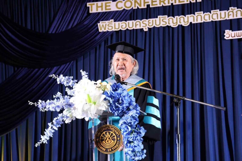 พิธีในครั้งนี้จัดขึ้นภายใต้มติเอกฉันท์ของสภามหาวิทยาลัยบูรพา ในการประชุมครั้งที่ 11/2568 เมื่อวันที่ 15 พฤศจิกายน พ.ศ. 2568 โดยมี รองศาสตราจารย์ ดร.สุมนต์ สกลไชย นายกสภามหาวิทยาลัยบูรพา ให้เกียรติเป็นประธานในพิธี รองศาสตราจารย์ ดร.วัชรินทร์ กาสลัก อธิการบดีมหาวิทยาลัยบูรพา กล่าวคำประกาศเกียรติคุณ และรองศาสตราจารย์ ดร.เสกสรรค์ ตันยาภิรมย์ คณบดีคณะศิลปกรรมศาสตร์ ร่วมมอบครุยปริญญากิตติมศักดิ์อย่างสมเกียรติ นอกจากนี้ มหาวิทยาลัยยังได้มอบประกาศเกียรติคุณแก่ นิสิตดีเด่น ประจำปีการศึกษา 2568 เพื่อส่งเสริมและสร้างขวัญกำลังใจแก่เยาวชนต้นแบบ