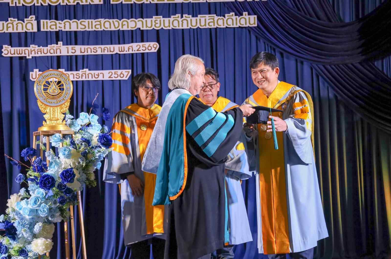 พิธีในครั้งนี้จัดขึ้นภายใต้มติเอกฉันท์ของสภามหาวิทยาลัยบูรพา ในการประชุมครั้งที่ 11/2568 เมื่อวันที่ 15 พฤศจิกายน พ.ศ. 2568 โดยมี รองศาสตราจารย์ ดร.สุมนต์ สกลไชย นายกสภามหาวิทยาลัยบูรพา ให้เกียรติเป็นประธานในพิธี รองศาสตราจารย์ ดร.วัชรินทร์ กาสลัก อธิการบดีมหาวิทยาลัยบูรพา กล่าวคำประกาศเกียรติคุณ และรองศาสตราจารย์ ดร.เสกสรรค์ ตันยาภิรมย์ คณบดีคณะศิลปกรรมศาสตร์ ร่วมมอบครุยปริญญากิตติมศักดิ์อย่างสมเกียรติ นอกจากนี้ มหาวิทยาลัยยังได้มอบประกาศเกียรติคุณแก่ นิสิตดีเด่น ประจำปีการศึกษา 2568 เพื่อส่งเสริมและสร้างขวัญกำลังใจแก่เยาวชนต้นแบบ