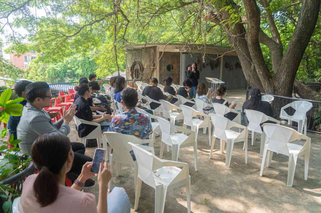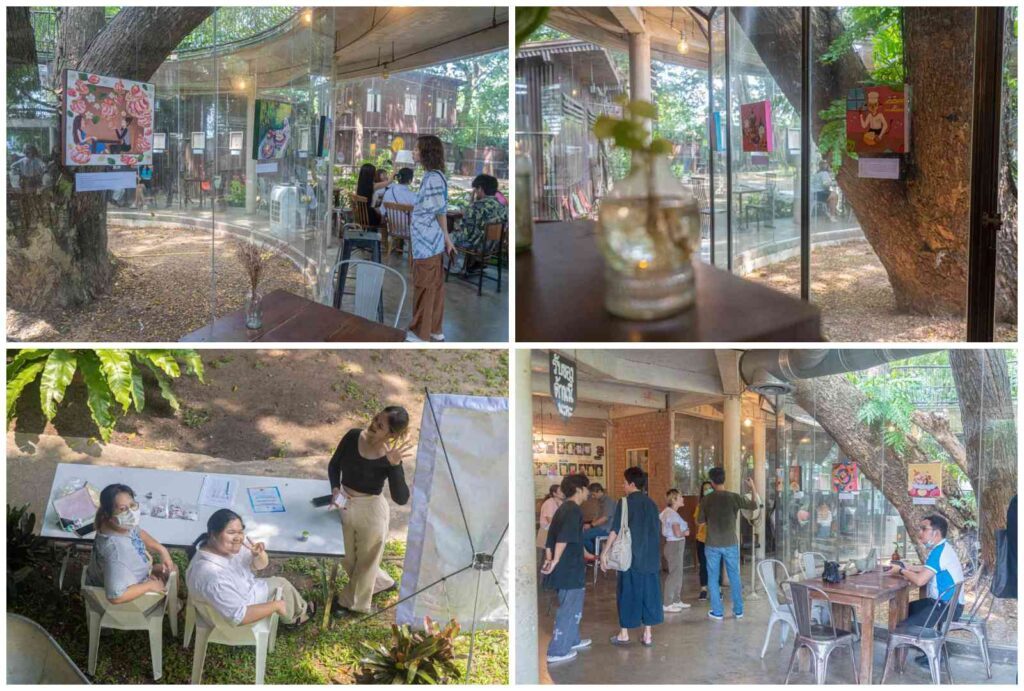 ภาพบรรยากาศการเปิดนิทรรศการ Art Exhibition “หวานละมุน ชุ่มฉ่ำใจ” แสดงผลงาน Painting เกี่ยวกับขนมหวานหลากหลายสไตล์ โดยนักศึกษาชั้นปีที่ 3 สาขาจิตรกรรมสร้างสรรค์ คณะศิลปกรรมศาสตร์ มหาวิทยาลัยบูรพา