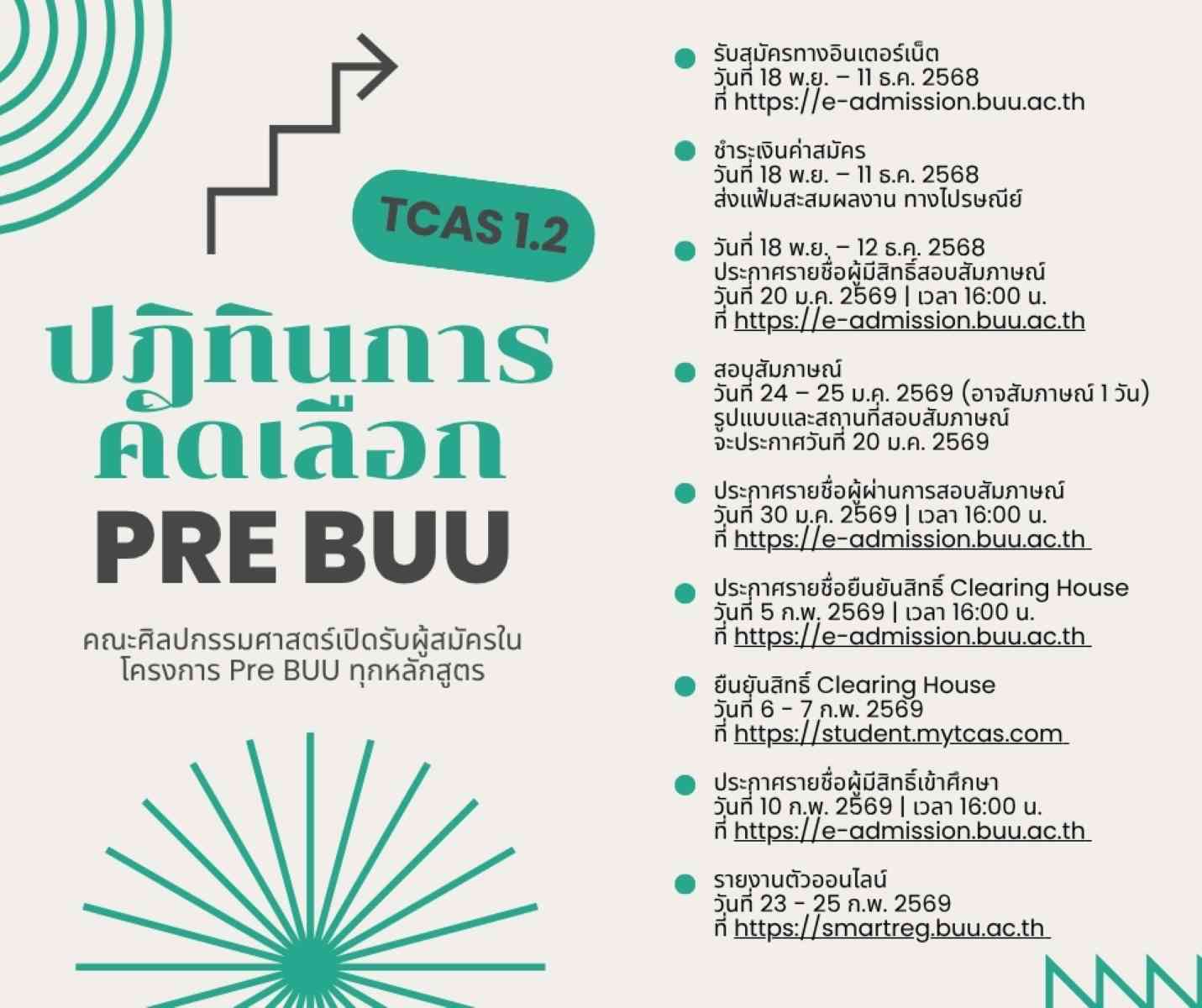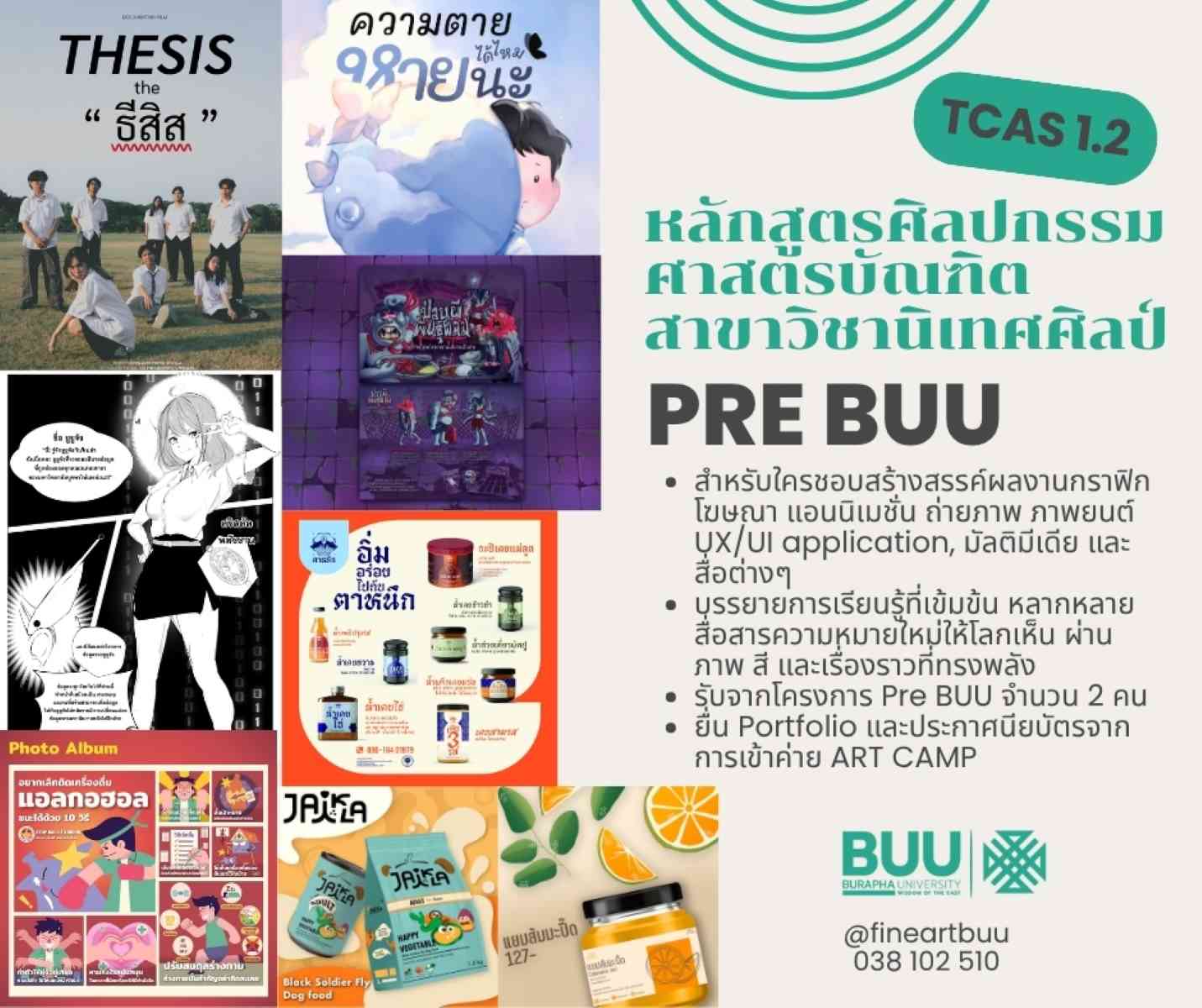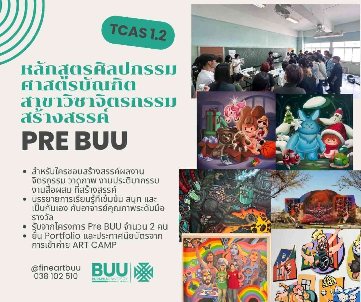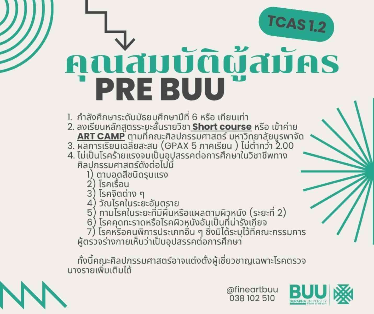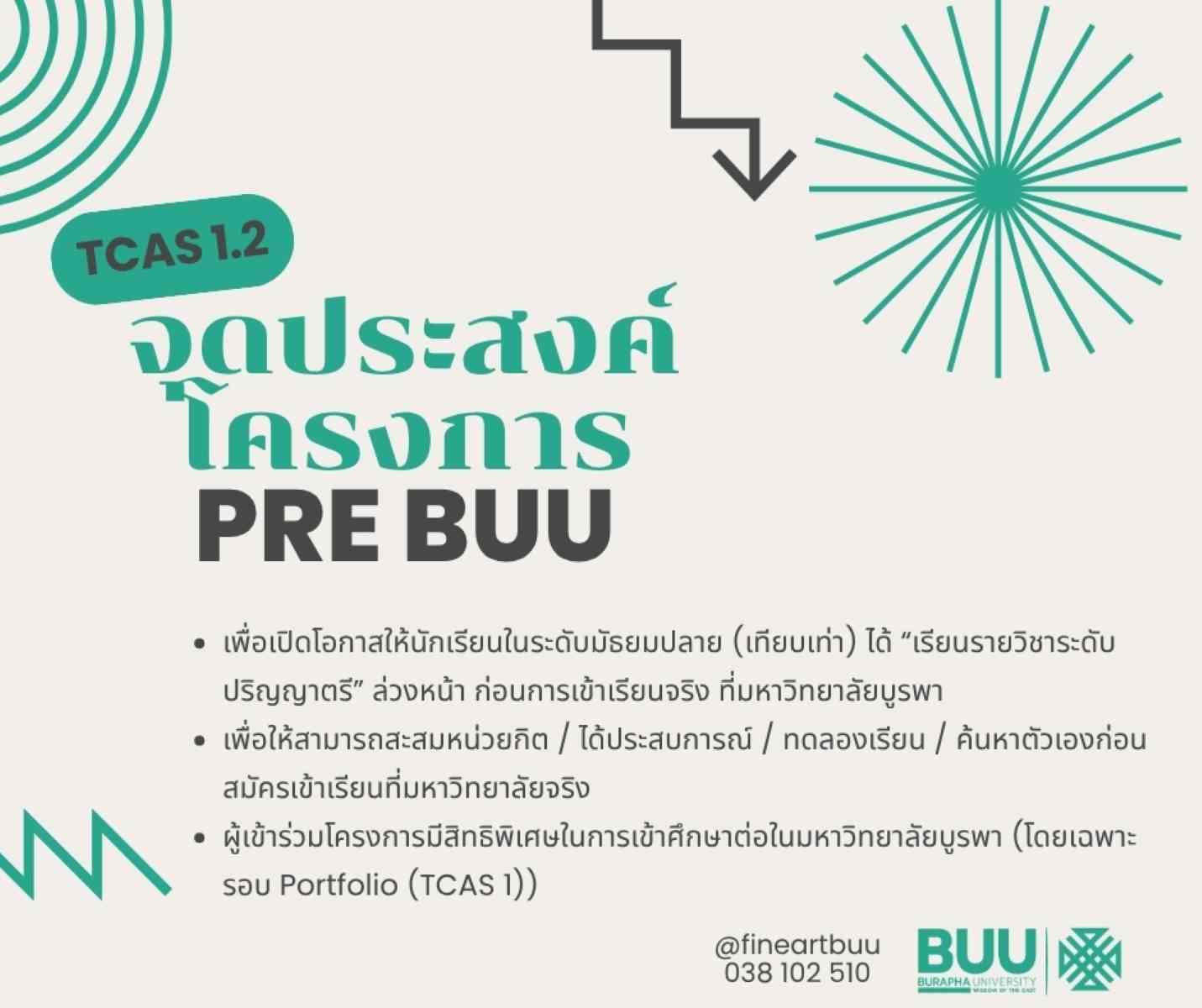 สำหรับน้อง ๆ ม.ปลาย ที่อยากเป็นนิสิตคณะศิลปกรรมศาสตร์ ม.บูรพา TCAS 1.2 กำลังจะเปิดรับสมัคร มาเตรียมความพร้อม ทำความรู้จักโครงการที่เปิดรับใน TCAS1.2 กันเถอะ หนึ่งในโครงการนั้นคือ Pre BUU