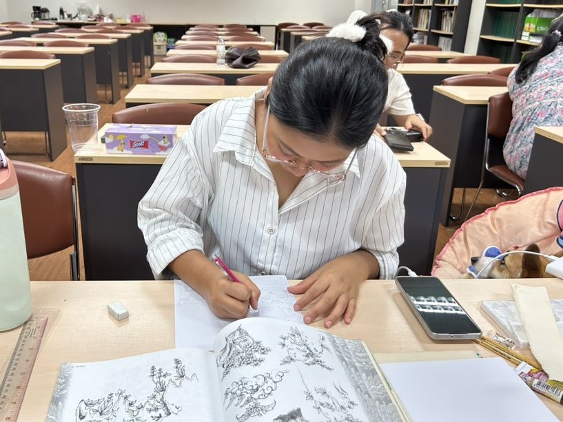 เมื่อวันที่ 30 สิงหาคม 2568 คณะศิลปกรรมศาสตร์ ได้จัดการเรียนการสอน หลักสูตรระยะสั้น “ศิลป์รักสัตว์ แบบจิตรกรรมไทยประยุกต์ (My Pet in Thai Style: Artistic Expressions of Love through Applied Thai)” สอดคล้องกับนโยบายการเรียนรู้ตลอดชีวิตของมหาวิทยาลัย ซึ่งผู้เข้าร่วมได้เรียนรู้กระบวนการสร้างสรรค์งานศิลปะ นำความงดงามของจิตรกรรมไทยมาประยุกต์เข้ากับการถ่ายทอดความรักที่มีต่อสัตว์เลี้ยง โดยมี คุณสุณัฐนิชา คำเมฆ ศิลปินจิตรกรรมไทยร่วมสมัยรุ่นใหม่ เจ้าของรางวัลศิลปนิพนธ์ยอดเยี่ยมปี 2555 และ ผศ.อธิวุธ งามนิสัย รองคณบดีคณะศิลปกรรมศาสตร์ และอาจารย์ประจำสาขาวิชาจิตรกรรมสร้างสรรค์ มาเป็นผู้ถ่ายทอดความรู้และประสบการณ์