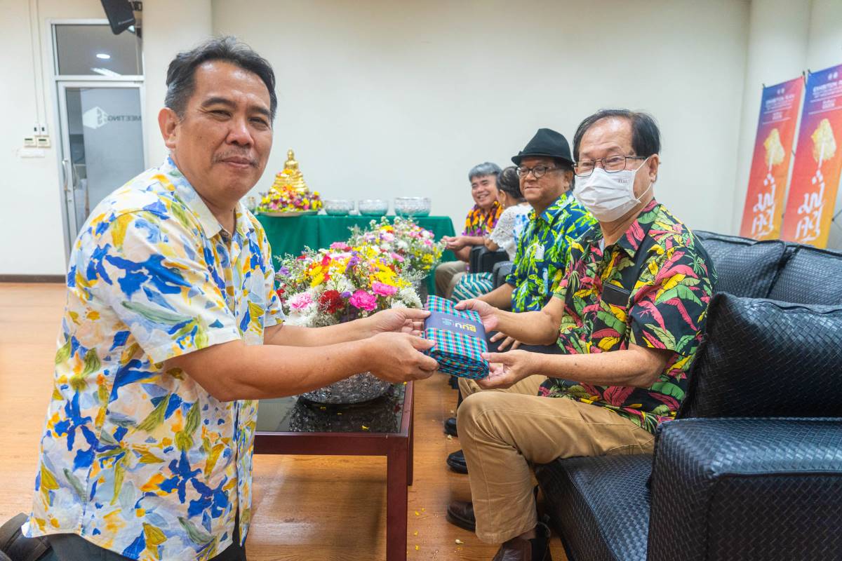 ในการนี้ได้รับเกียรติจาก รศ. เทพศักดิ์ ทองนพคุณ, ศาสตราจารย์เกียรติคุณสุชาติ เถาทอง, รองศาสตราจารย์เรณู คฤคราช และอาจารย์สมาน สรรพศรี พร้อมด้วย รองศาสตราจารย์ ดร.เสกสรรค์ ตันยาภิรมย์ คณบดีคณะศิลปกรรมศาสตร์ กล่าวอวยพรให้แก่ ผู้บริหาร คณาจารย์ และบุคลากร เนื่องในโอกาสวันสงกรานต์ ประจำปี 2567