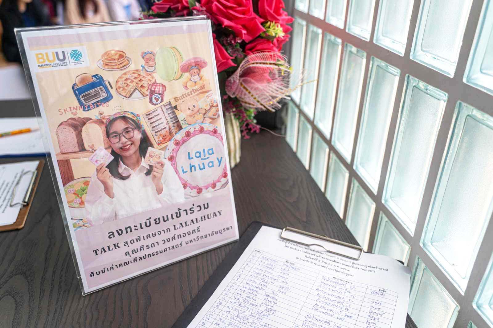 เมื่อวันจันทร์ที่ 5 สิงหาคม 2567 เวลา 13.00 น. ที่ผ่านมา ได้มีกิจกรรม Talk สุดพิเศษจาก Lalalhuay คุณศิรดา วงศ์ทองศรี ศิษย์เก่าสาขานิเทศศิลป์ คณะศิลปกรรมศาสตร์ มหาวิทยาลัยบูรพา ศิลปินผู้อยู่เบื้องหลังลายเส้นที่สุดฮิตกันตอนนี้ “น้องเนย” มาสคอตหมีประจำแบรนด์ Butterbear ที่มาบอกเล่าไอเดียในการสร้างสรรค์ผลงานให้กับทุกคน ณ ศูนย์นวัตกรรมการออกแบบ (ห้องครึ่งวงกลม) คณะศิลปกรรมศาสตร์ มหาวิทยาลัยบูรพา