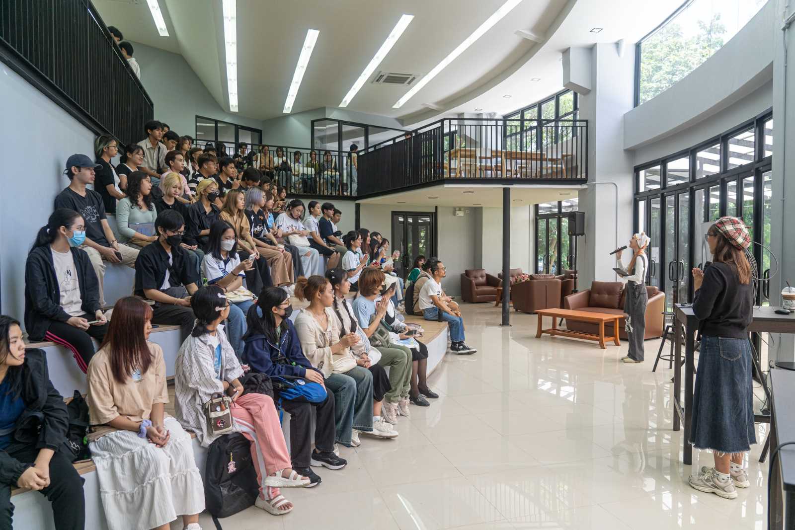 โดยได้รับเกียรติจาก ผู้ช่วยศาสตราจารย์กฤษฎา แสงสืบชาติ ประธานสาขานิเทศศิลป์ ให้เกียรติกล่าวต้อนรับผู้เข้าร่วมฟังบรรยายพิเศษทุกท่าน นอกจากนี้ยังมีน้องๆ นิสิตและบุคคลภายนอกที่สนใจเข้าร่วมฟังอีกเป็นจำนวนมาก