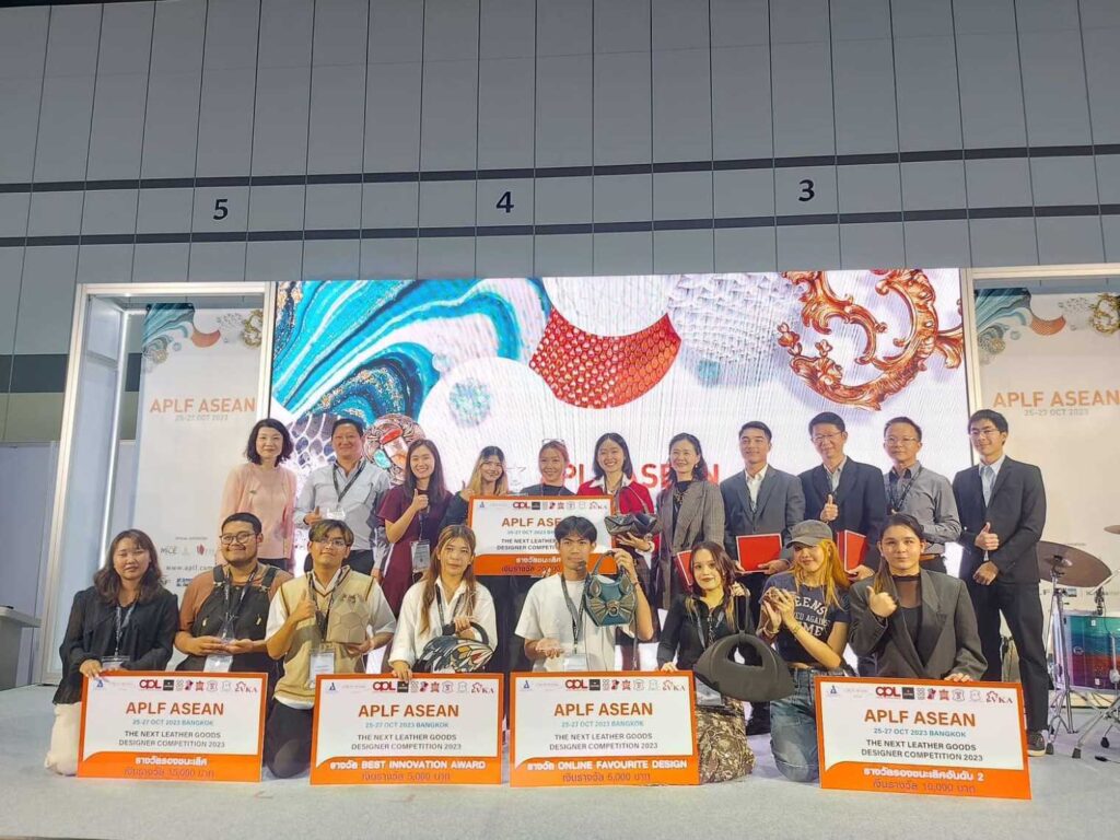 โครงการ “The Next Leather Goods Designer Competition 2023” จัดโดย APLF Limited ซึ่งเป็นการจัดแข่งขันประกวดออกแบบกระเป๋าเครื่องหนังที่เปิดโอกาสให้ผู้ที่สนใจได้เข้าร่วมพัฒนาทักษะและนำเสนอไอเดียอย่างสร้างสรรค์ตลอดระยะเวลา 1 เดือนที่ผ่านมาภายใต้แนวคิด Simple Is Sustainable และมีจำนวนผู้แข่งขันทั้งหมด 41 ทีม โดยขั้นตอนการประกวดเริ่มตั้งแต่การส่งประกวดต้นแบบ เข้าร่วมเวิร์คช๊อปการต่อยอดทางธุรกิจ จนถึงกระบวนการผลิตเครื่องหนังและนำเสนอแผนธุรกิจเพื่อเป็นผู้ประกอบการรุ่นใหม่ในอุตสาหกรรมเครื่องหนังต่อไปอนาคต