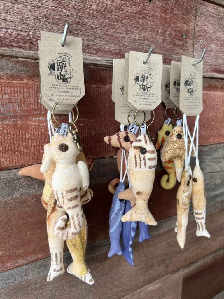 At the time, the community operated collaboratively, hosting activities and businesses such as homestays for tourists visiting key attractions like the Shrine of Prince Admiral Chumphon Khet Udomsak, Tung Prong Thong, and the HTMS Prasae Memorial Park. Additionally, the community produced and sold souvenirs, including handmade sea animal dolls, shrimp paste, dried shrimp, tea from Indian Marsh, and traditional desserts such as Kanom Kala, under the brand “Ban Kao Rim Nam Prasae Community Enterprise.”