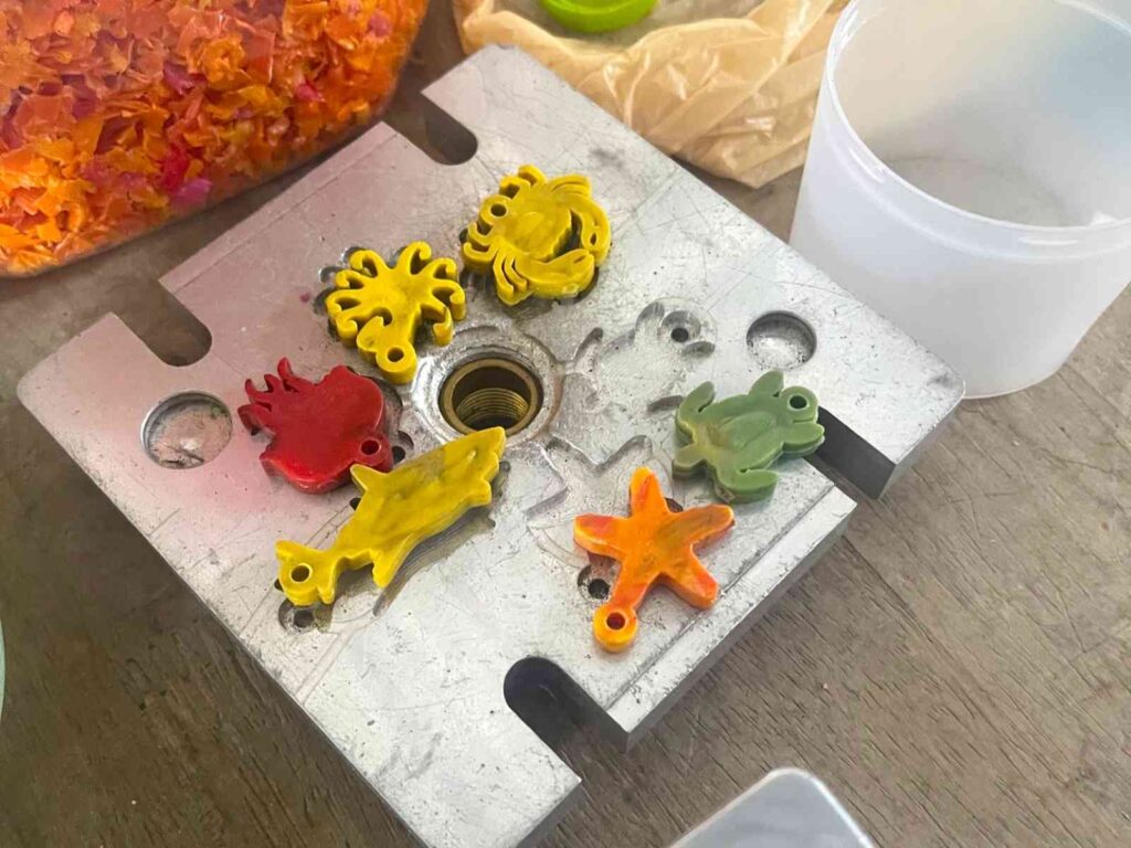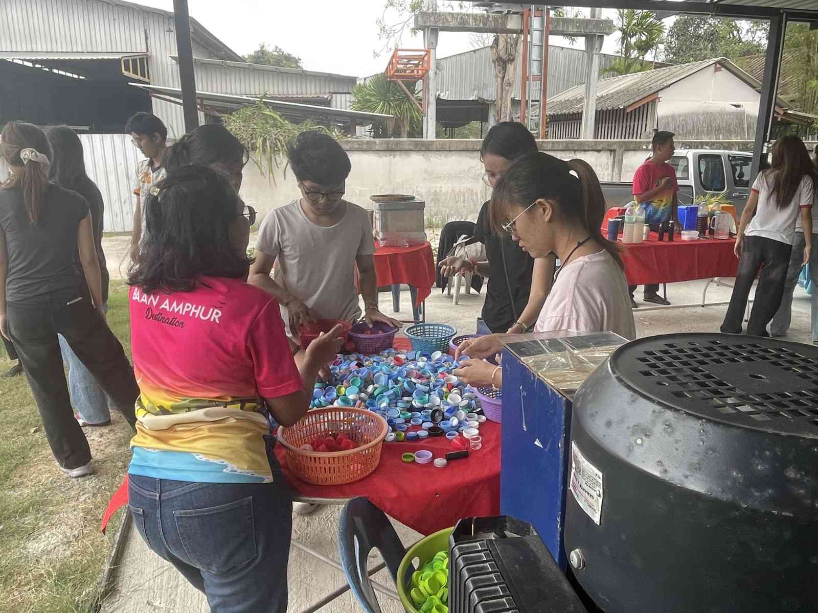 - ฐานที่ 5 การจัดการฝาขวดพลาสติก แยกประเภทและบดวัสดุเพื่อเข้าสู่กระบวนการรีไซเคิล